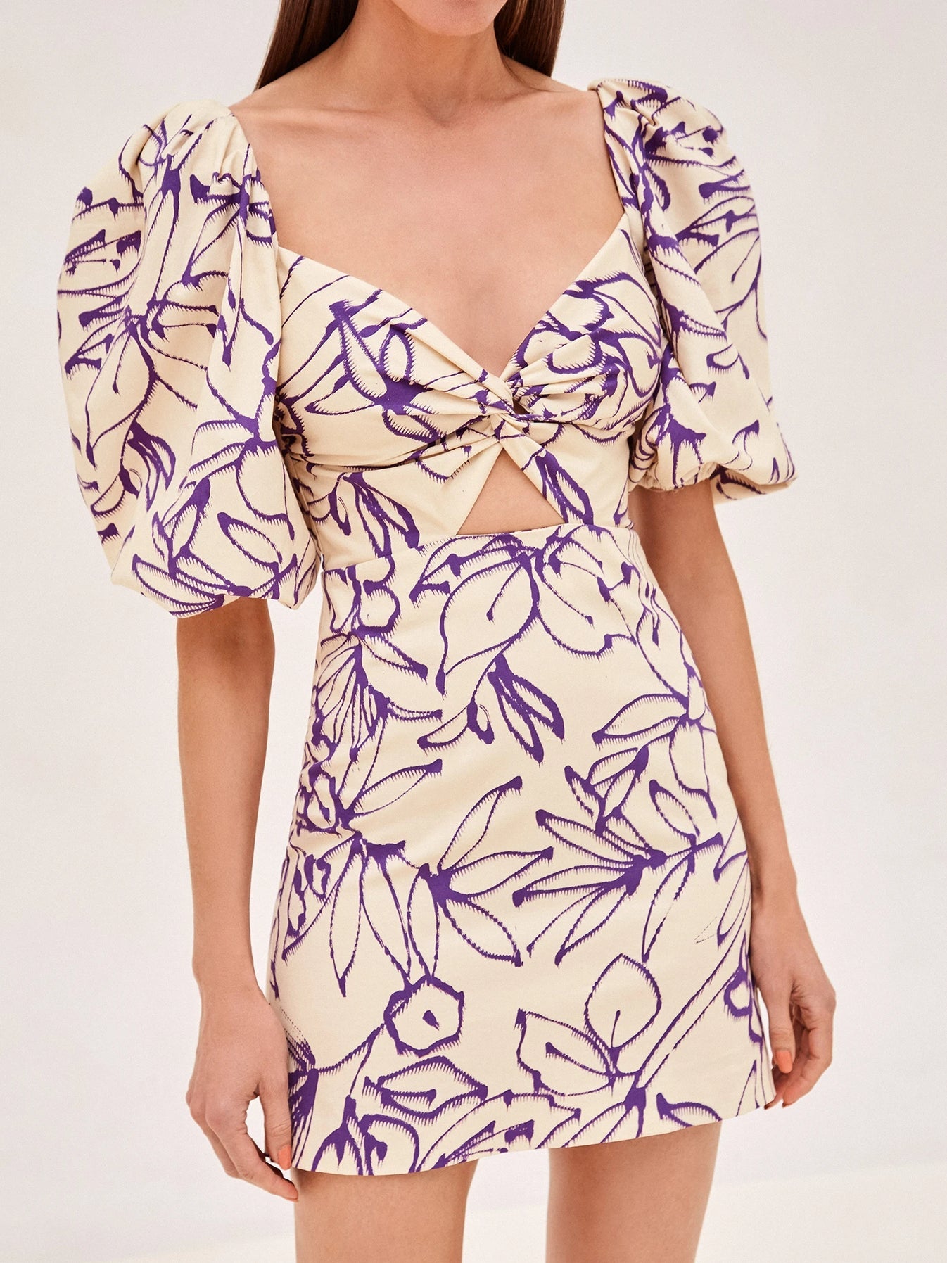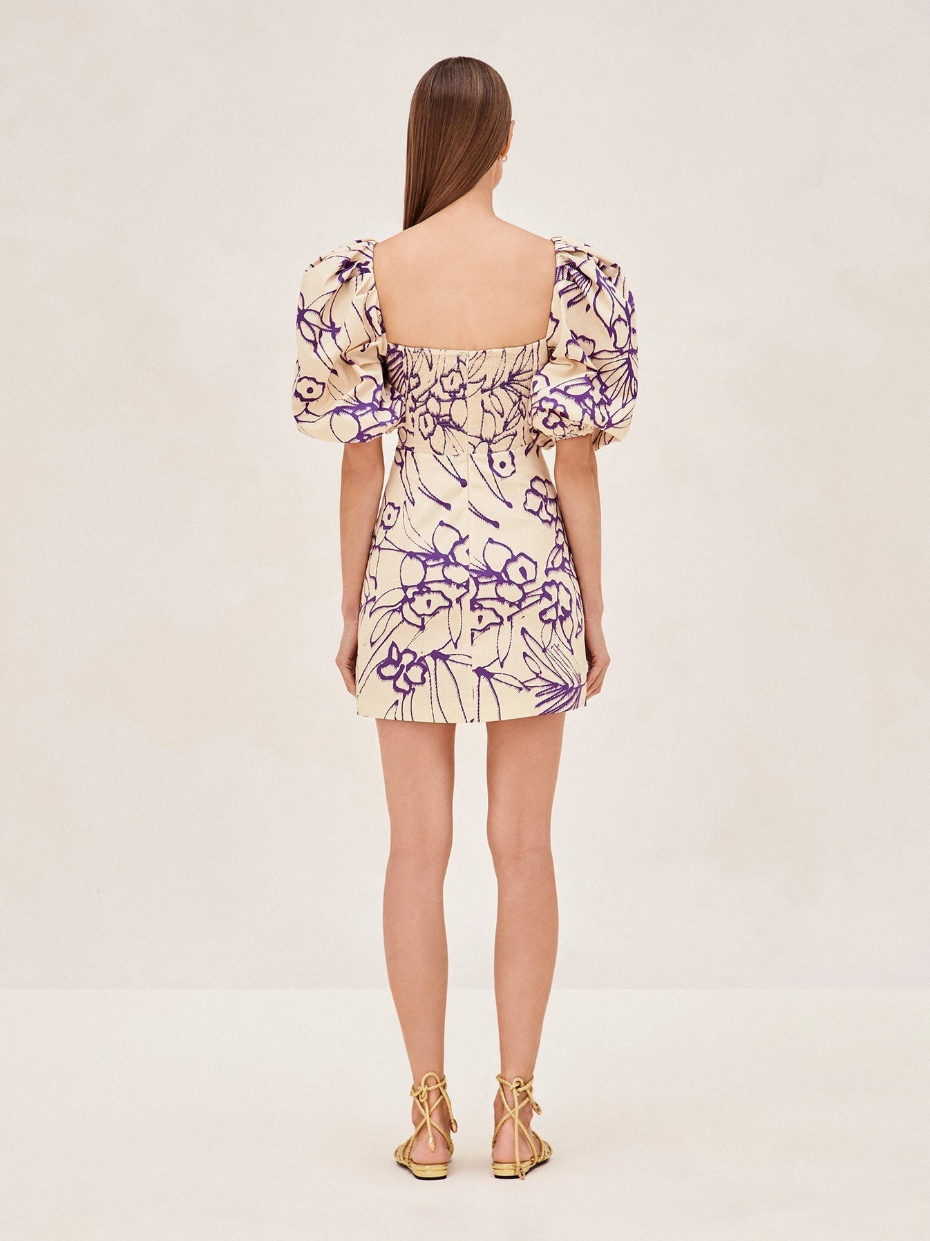 The Rapha Dress makes a delightful statement with its vivacious floral print in warm, inviting tones. The sweetheart neckline and gathered bust exude a feminine charm, while the puff sleeves add a whimsical, modern twist. Its sculpted silhouette and mini length offer a playful yet poised look.