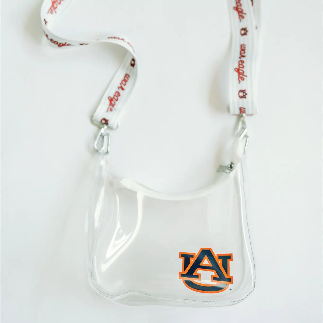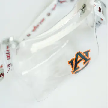 The clear stadium bags include an adjustable light blue watercolor strap. AU, collegiate, football, stadium, clear, purse, bag, college, back to school, fall, tigers, orange, blue