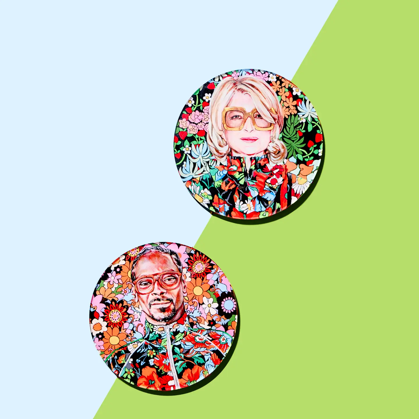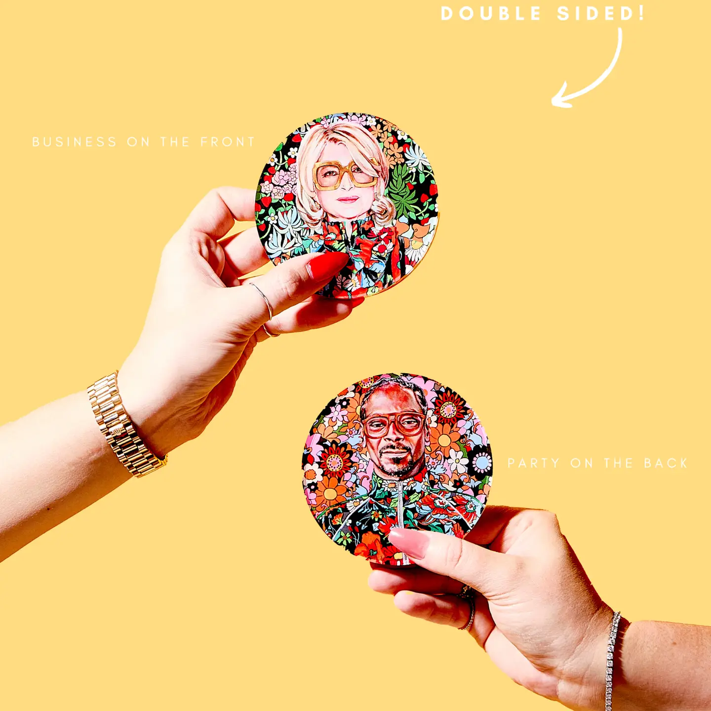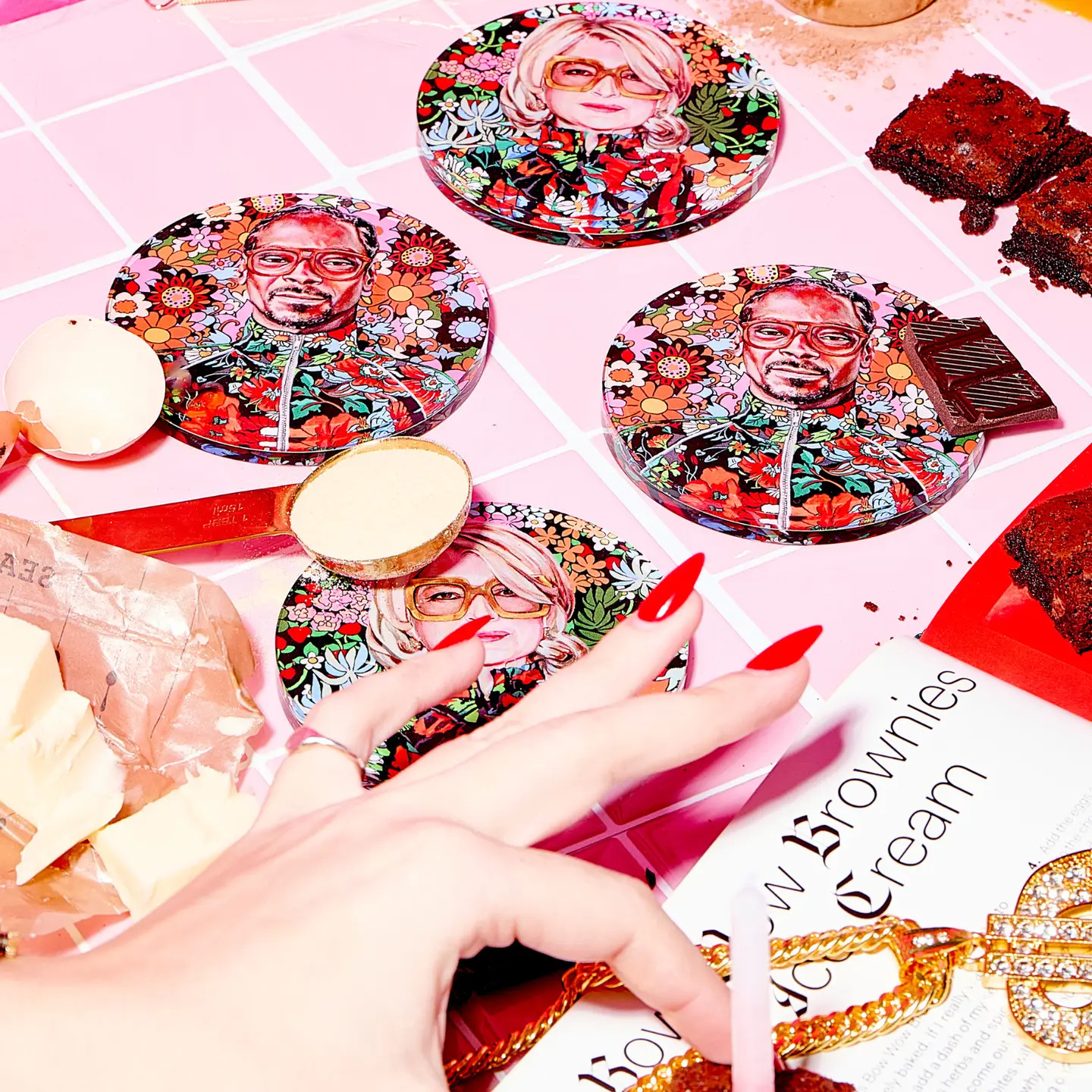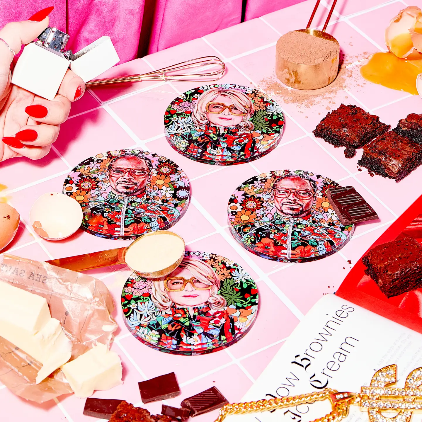 Keep your surfaces stylishly protected with Best Buds Coasters. Business on the front, party on the back - Featuring Snoop on one side and Martha on the other, these coasters are truly these acrylic coasters are a playful addition to any home. Show off your love for the unlikely duo and keep your drinks from leaving rings at the same time. - Coasters sold individually - Double-sided (Matha on the front, Snoop on the back) - Size: 4" L x 4'' W x .5'' H