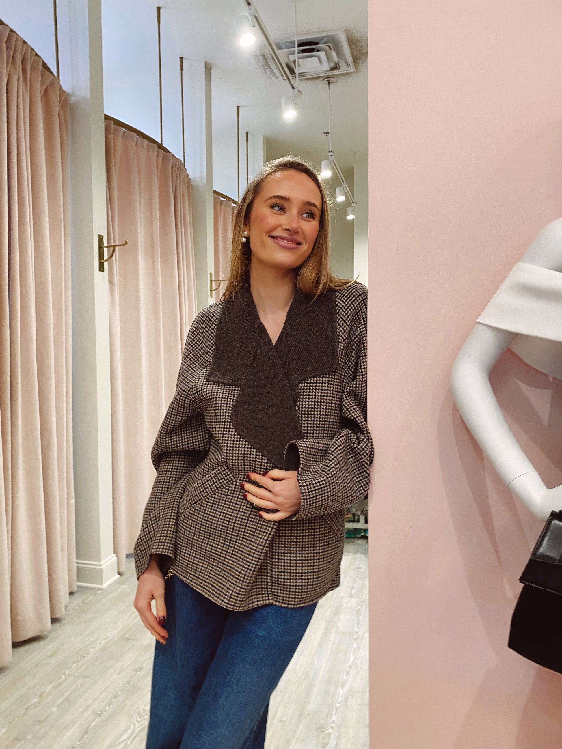 Pardon our French. The Cameron Coat is a fall favorite, inspired by a vintage Parisian piece from the 80's. Crafted from a double-faced wool blend, this double-breasted jacket has a cocoon silhouette that's finished with raglan sleeves, an exaggerated lapel, faux horn buttons and front welt pockets.