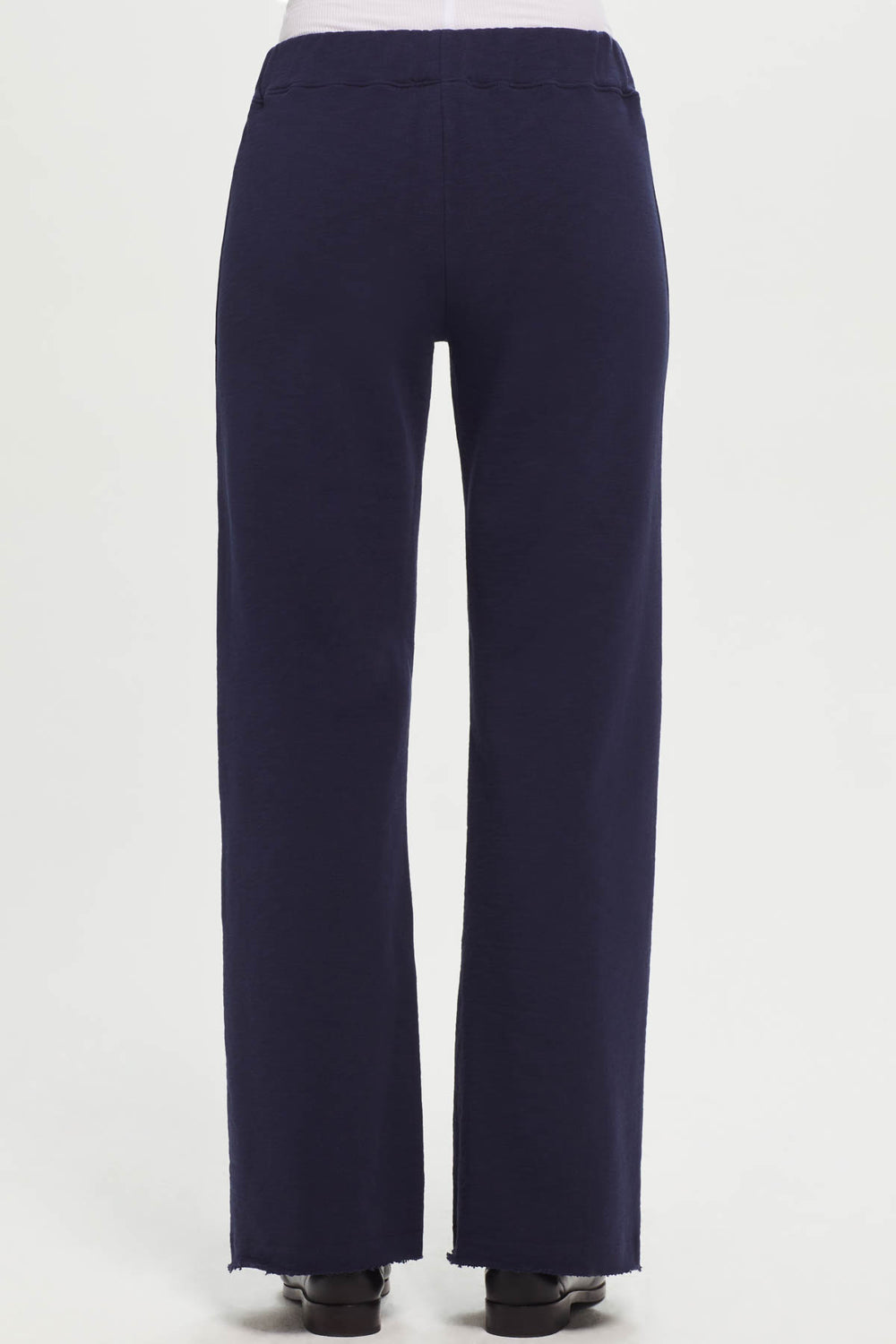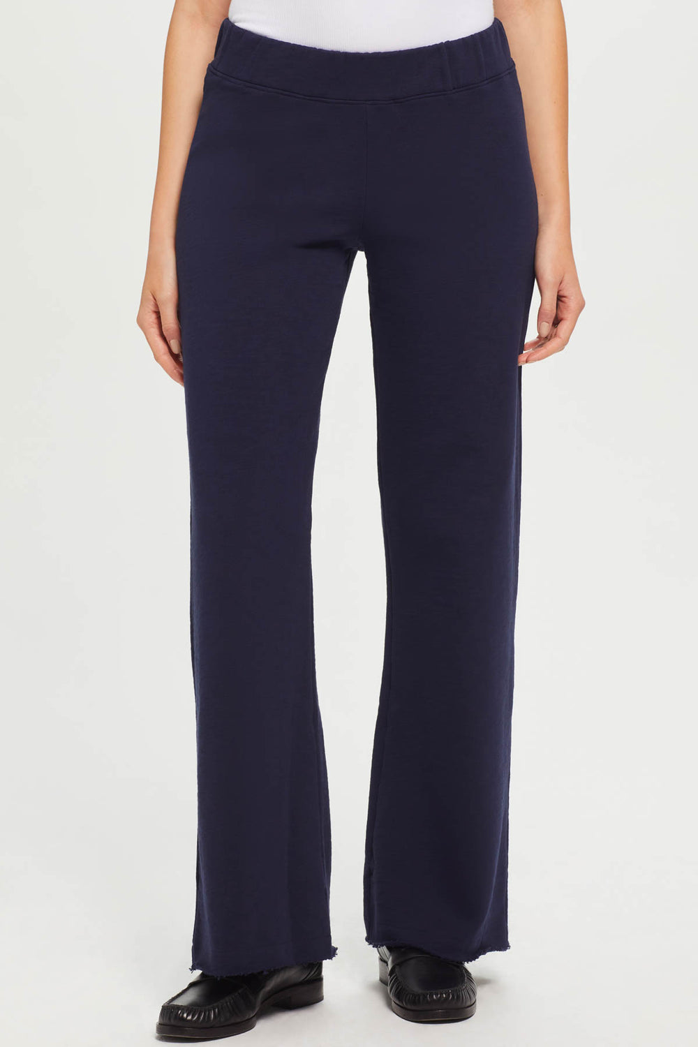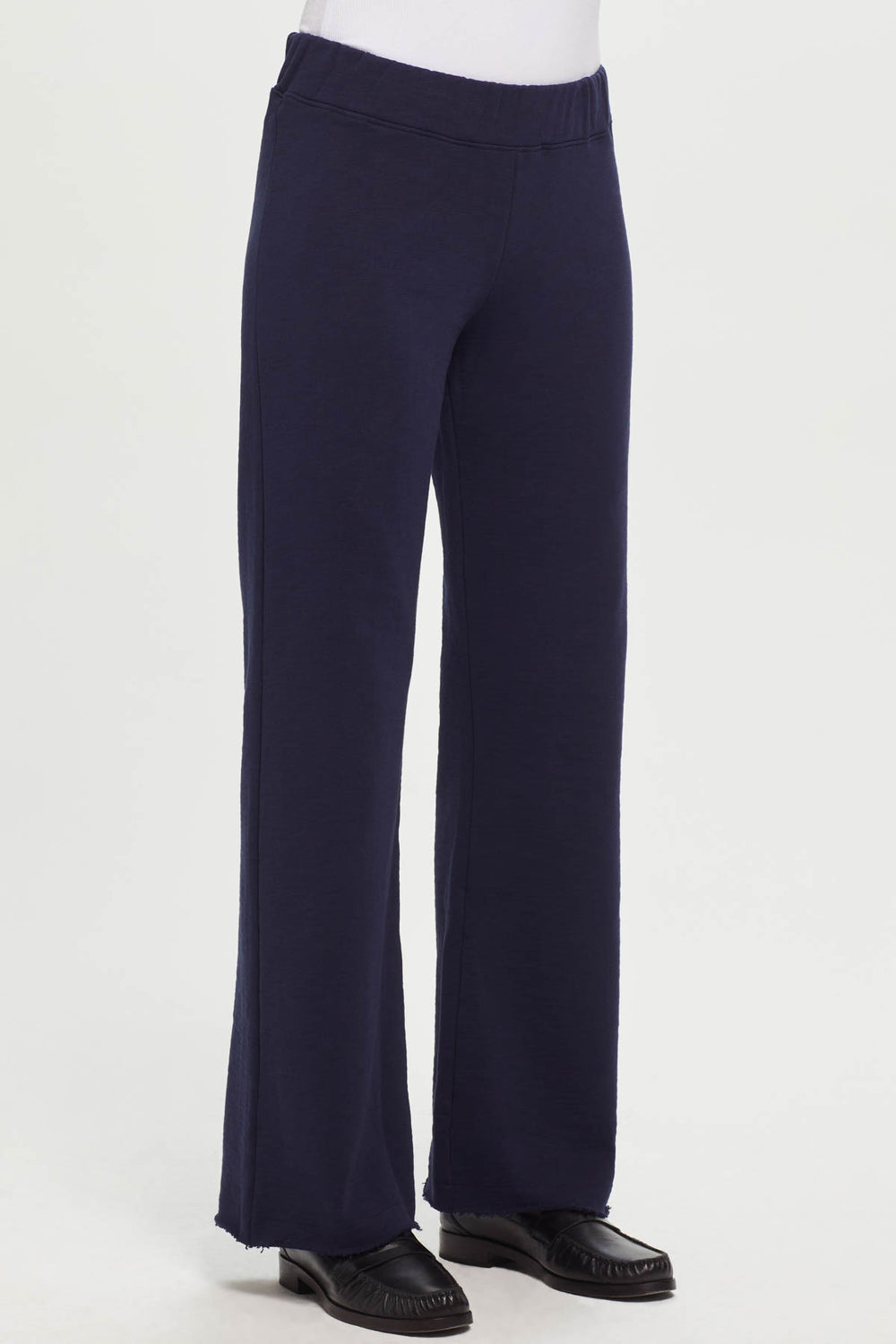 Too easy: a high-rise French terry pant with a perfect mid-width leg. This style has a banded waist for comfort and unfinished hems.