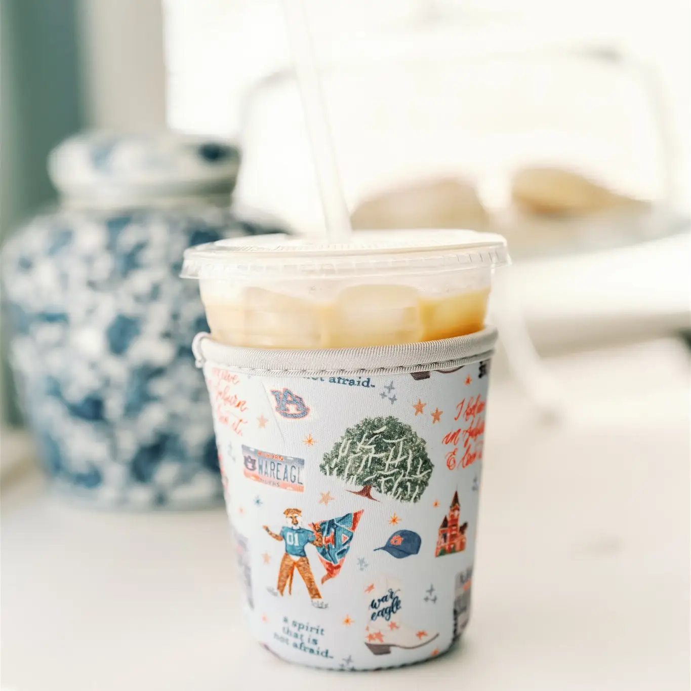 Show your Tiger pride with our officially licensed reusable neoprene coffee sleeve, featuring hand-illustrated designs of the university’s most iconic landmarks and points of interest.