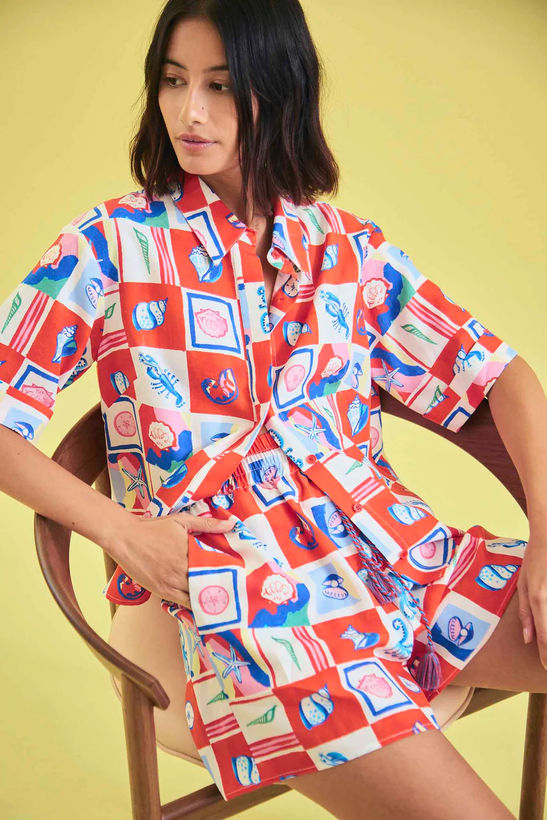 The Leigh top is making its debut in an unexpectedly chic primary color pattern inspired by European seaside holidays.
