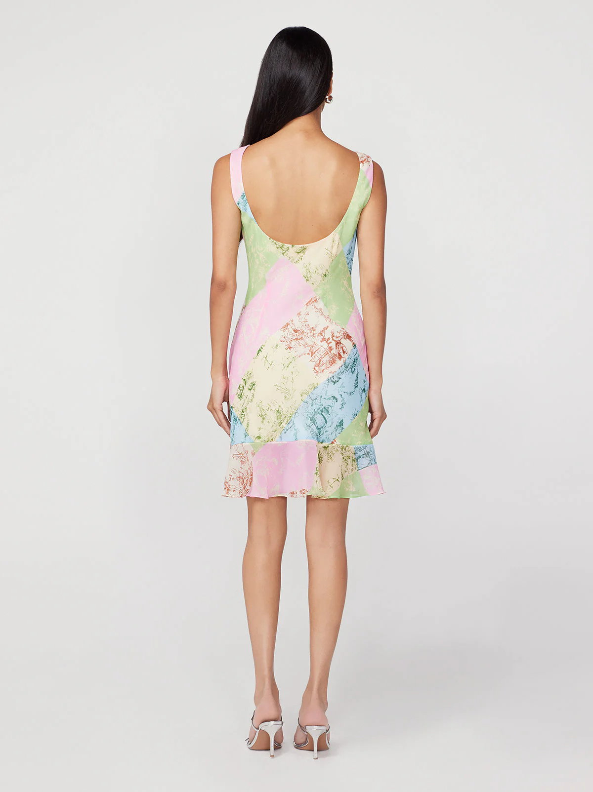 More is more. Roberta's cowl neck and asymmetric ruffle hem make her the best dress for any spring rendezvous (or soirée). Her in-house designed Toile De Jouy takes inspiration from the soft palette of summer in a contemporary patchwork arrangement.
