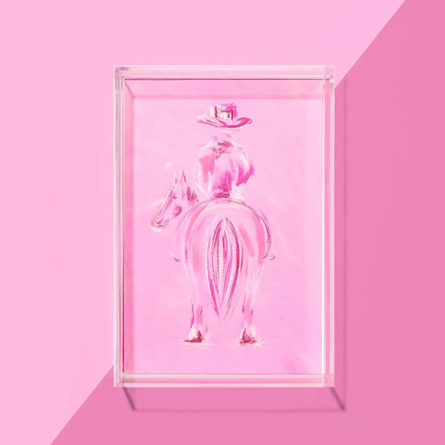 Serve up some fun with the Mustang Sally Small Tray! This acrylic tray features a hot pink horse painted by artist Emma Katherine, making it the go-to gift for any occasion. Durable and eye-catching, it's a must-have addition to any home. -Size: 6.5" L x 9.5" W x 1.5" H -Trays are sold individually -Made of acrylic -Handmade with love in Dallas, Texas