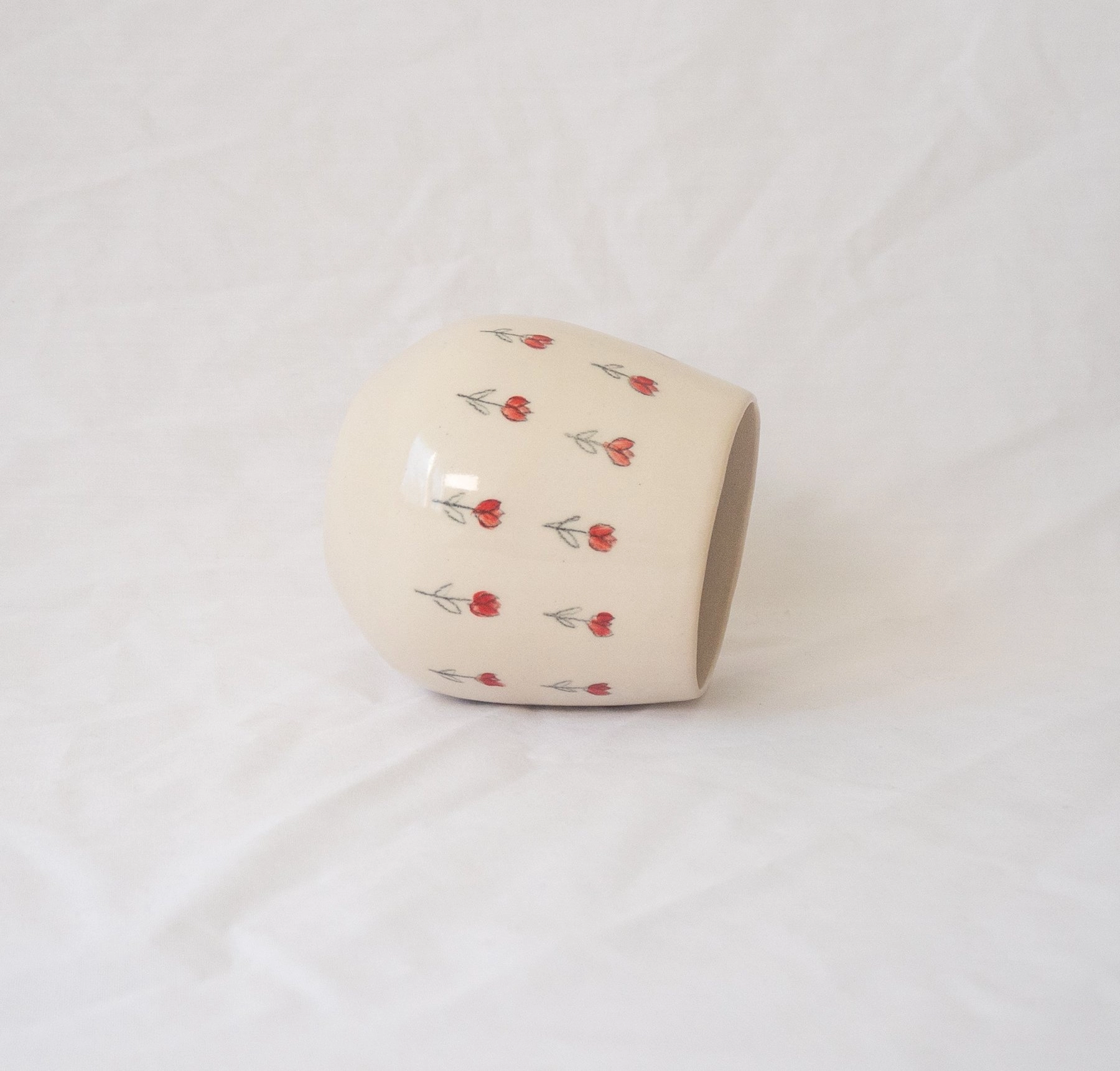 ERIKA CHRISTINE CERAMICS LINE DRAWN TULIPS CUP- RED