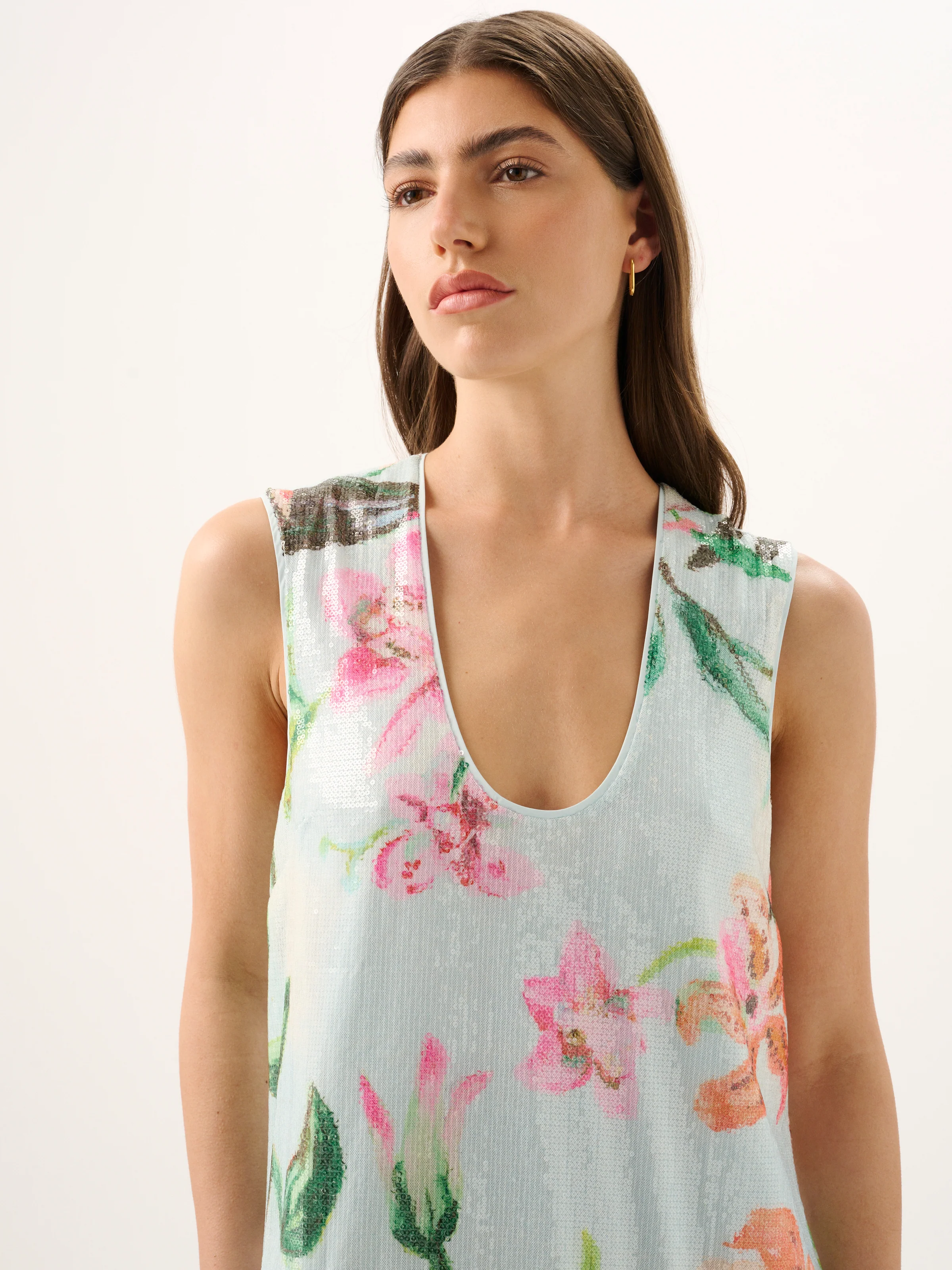 A playful take on evening dressing, the Bambi Sequin Mini Dress features our exclusive Tucano print rendered in shimmering micro sequins. Designed in a flattering bubble silhouette with a low scoop neckline and drop waist, this mini is finished with a full, bubbled skirt for a statement yet polished look.