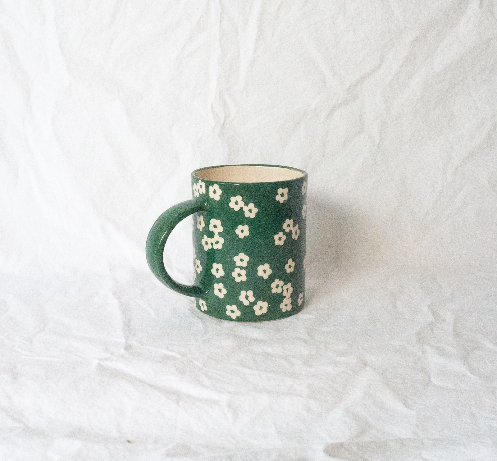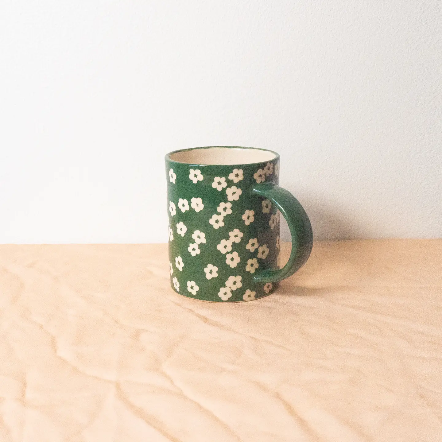 ERIKA CHRISTINE CERAMICS SCATTERED PETUNIA MUG - EMERALD GREEN