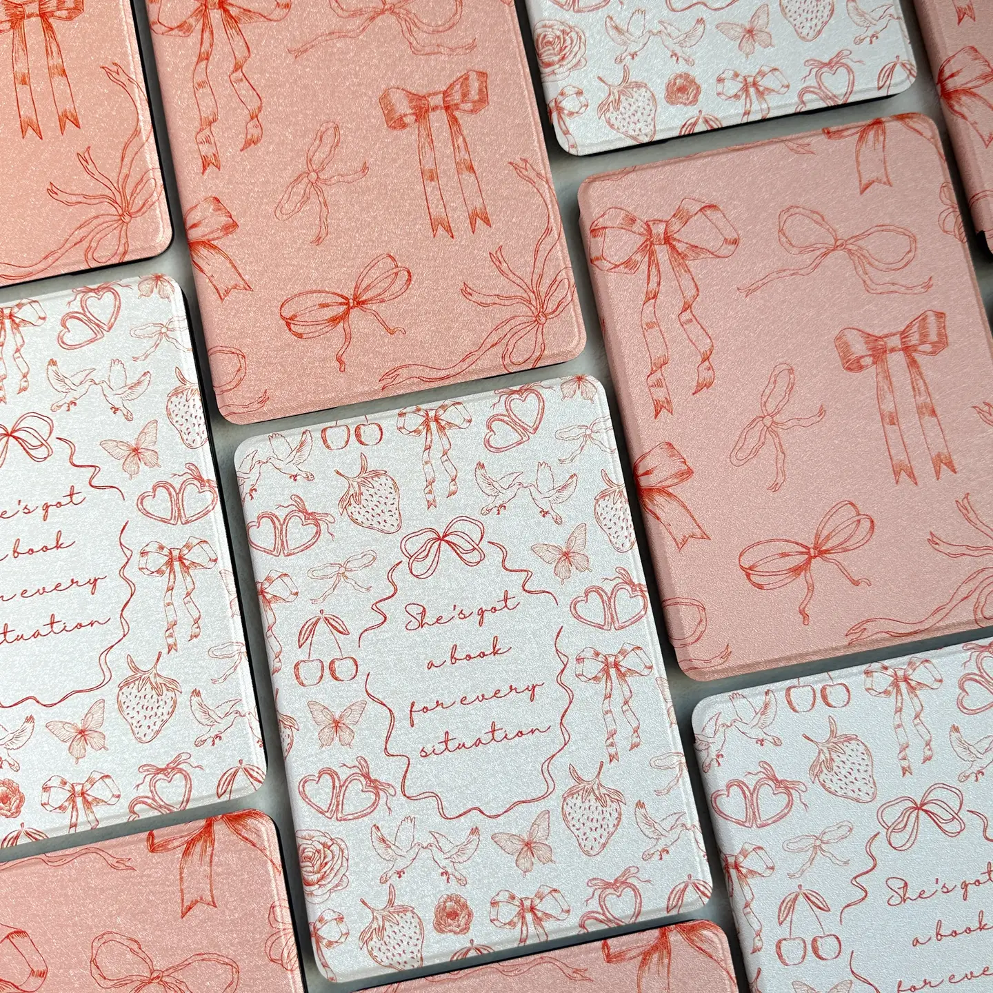 This one's for the girls. Do your kindle cases have an auto wake/sleep feature? Yes! Our cases will initiate your device to sleep and wake up when the cover closes and opens. Are your kindle cases water-resistant? Yes, but they are not water-proof and should not be submerged frequently. Do not expose your case to anything with a high oil content like excess sunscreen or lotion, as that can cause damage to the case’s ink.