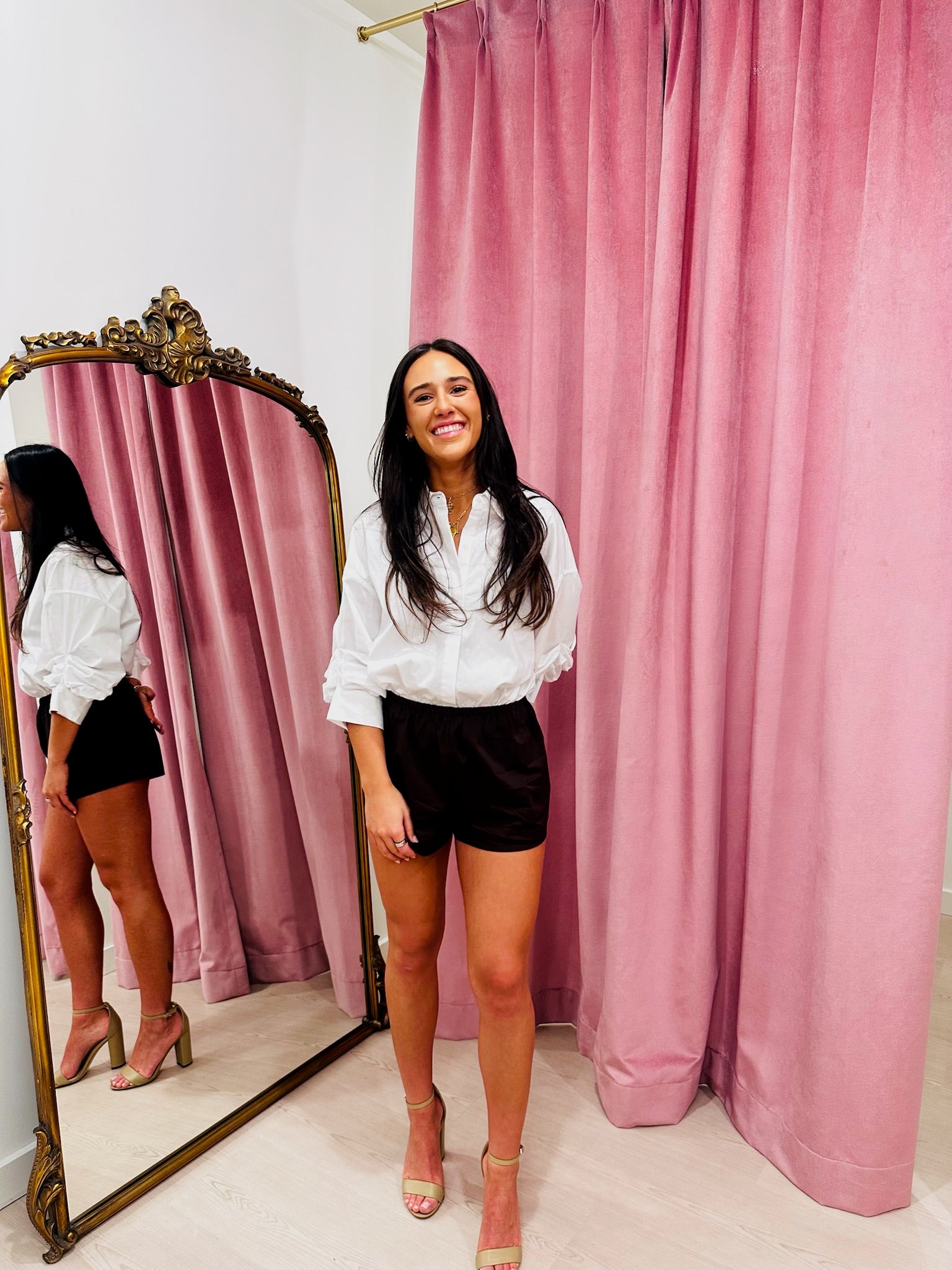 A cotton poplin shirt bodysuit, the Traverse takes the guesswork out of styling an oversized shirt by offering a fixed rolled cuff and adjustable elastic bottom.