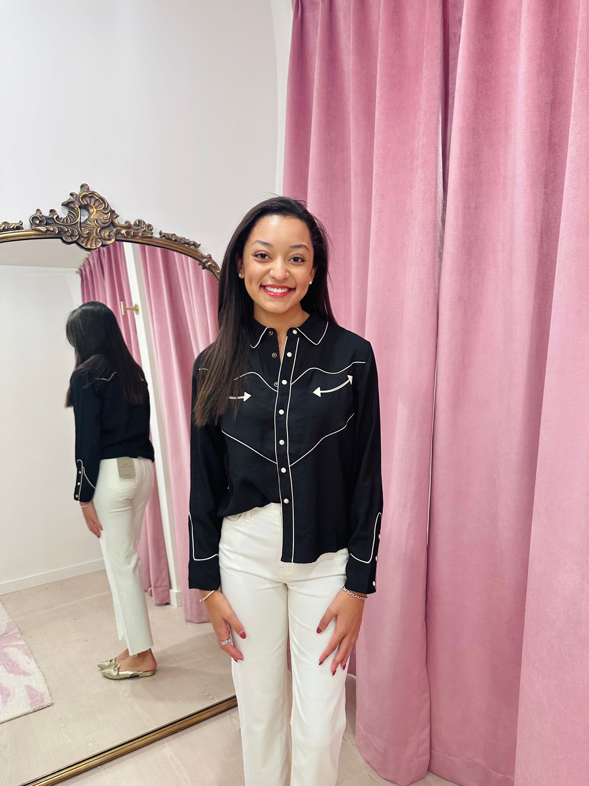 Contrasting piping enhances the Western-inspired vibes of this lightweight shirt.