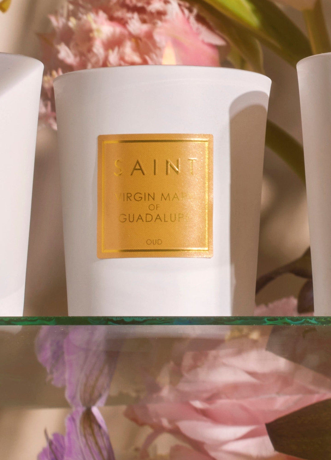 Available in a special edition white vessel for a limited time. The heavenly color of white represents wholeness and completion. It also symbolizes new beginnings, rebirth and surrender. Burn this candle to fill your space with the fragrance of warming oud and light spring florals. Prayer to Virgin Mary of Guadalupe