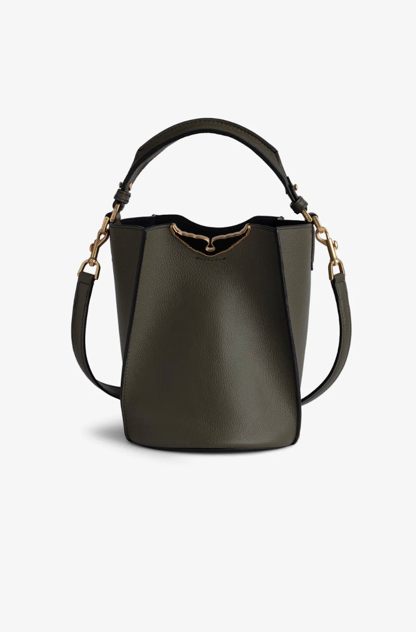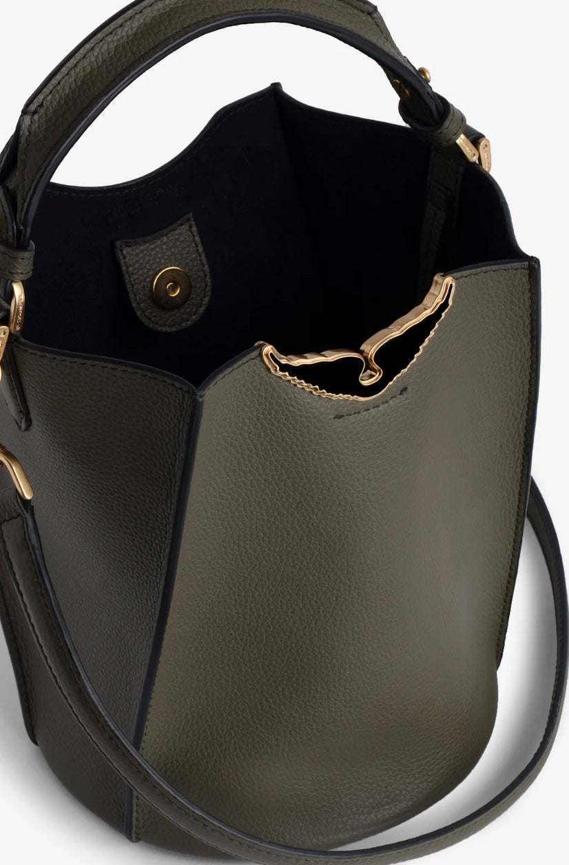 - Women’s Borderline Bucket bucket bag in Record khaki grained leather