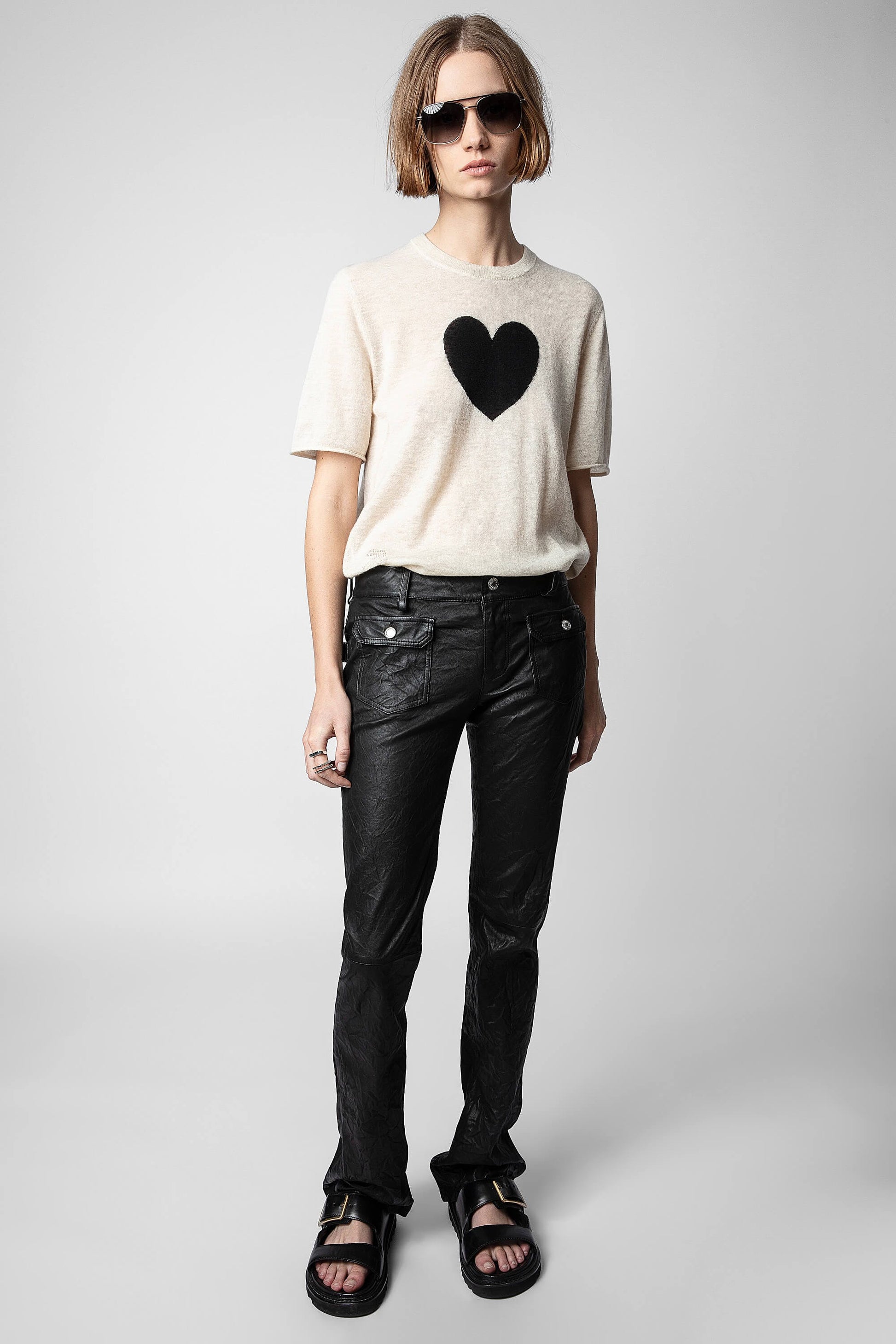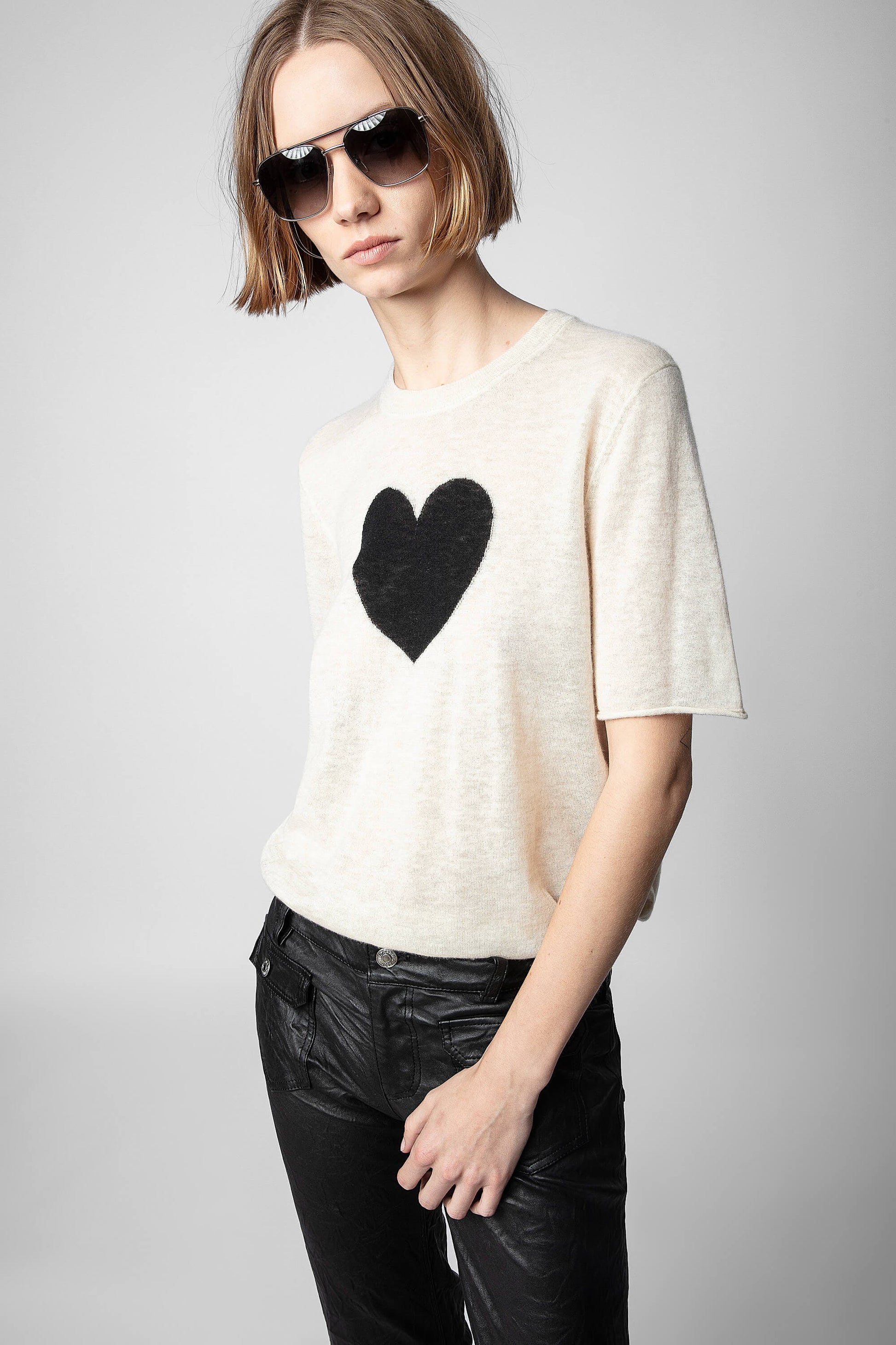 Embellished with a contrasting heart, this soft and light short-sleeved sweater in 100% cashmere combines softness and comfort.