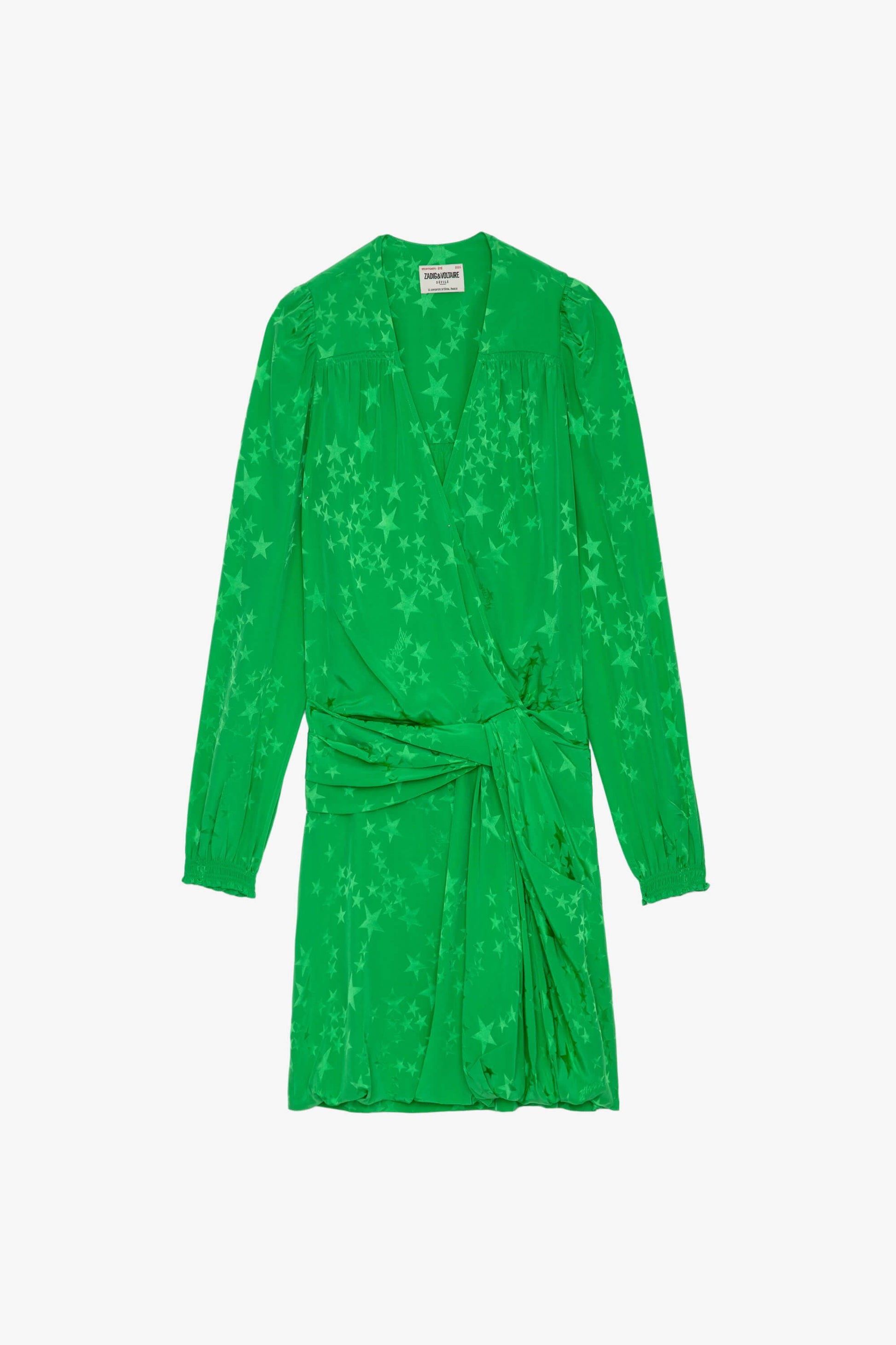 Delicately gathered and tied at the waist, the silk Recol mini dress is adorned with a star-studded jacquard. Delicately draped at the shoulders and waist, it features a crossed neckline and long sleeves.