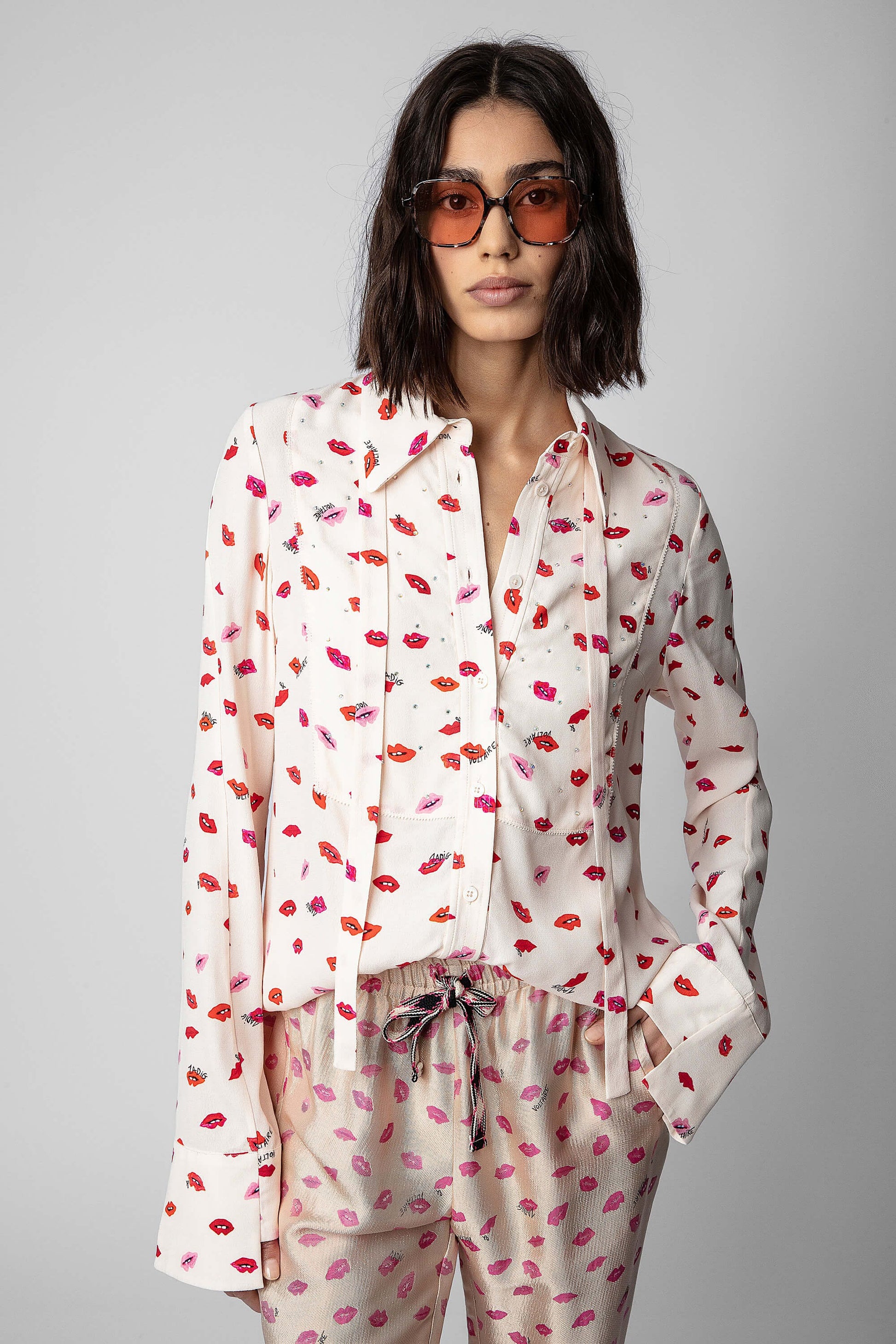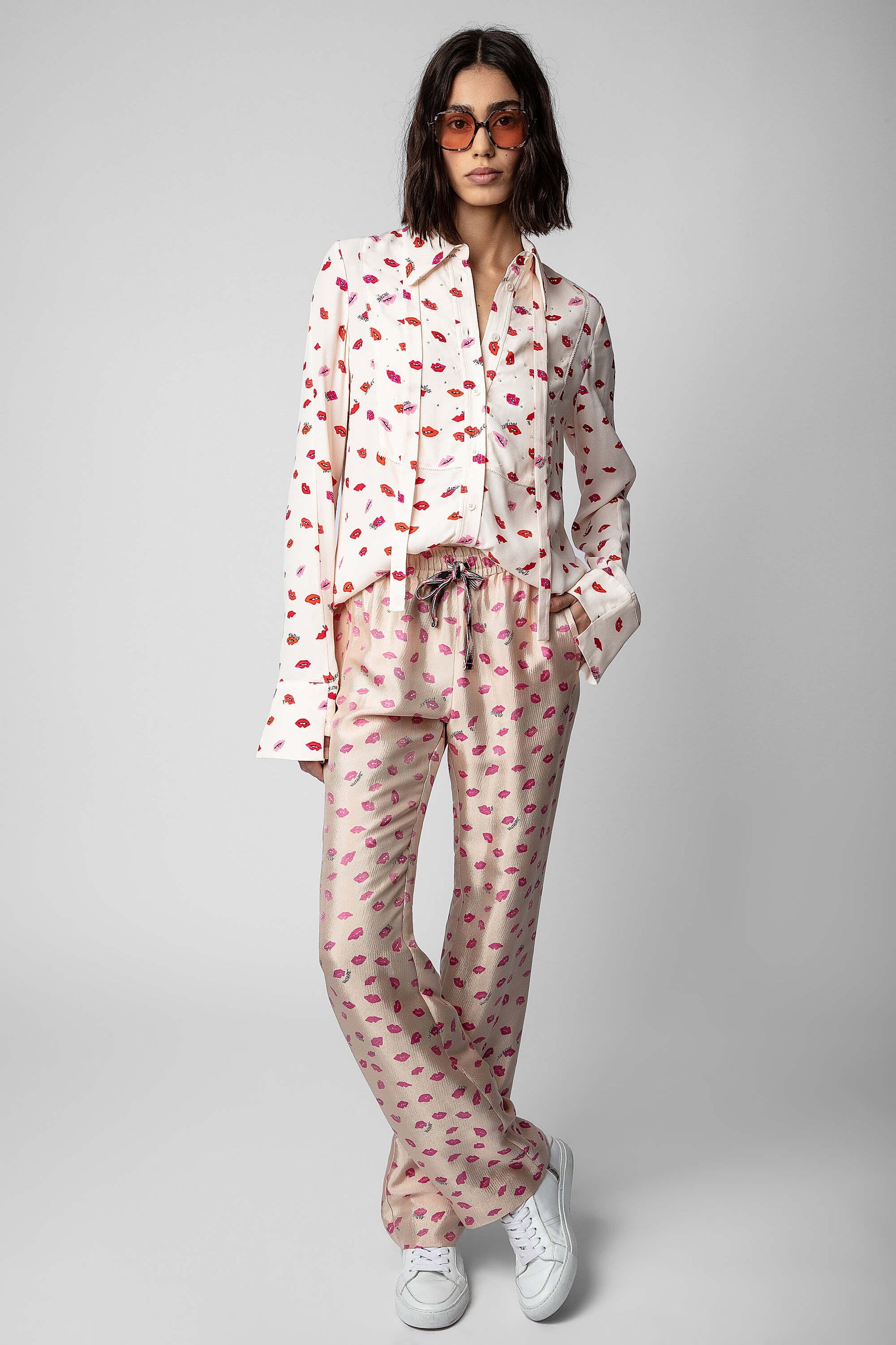 The collection's flagship print is featured on the Tessi shirt. Flowing and light, its crepe material offers a chic and elegant fit, and its floppy necktie collar offers multiple ways to wear it.