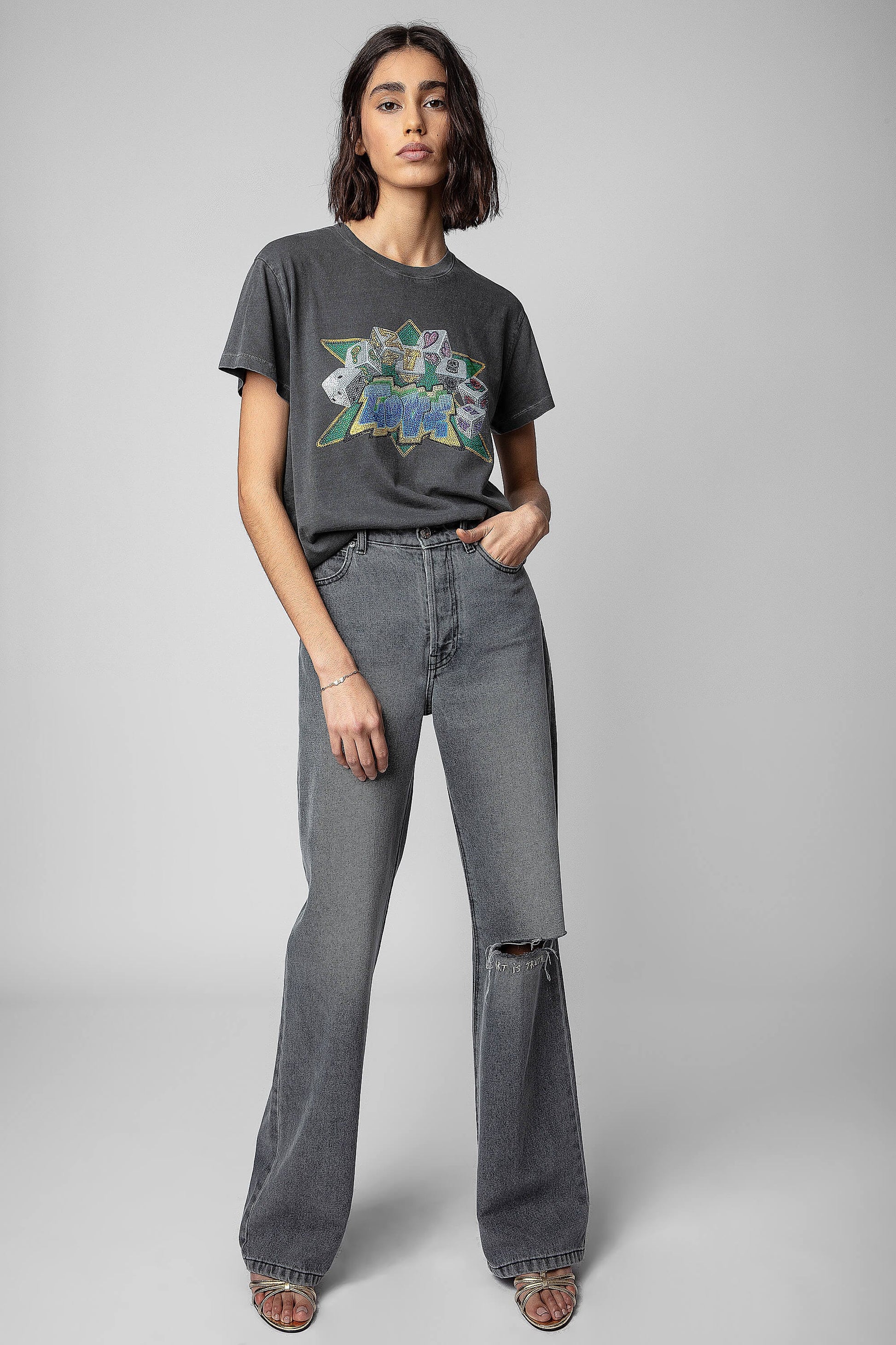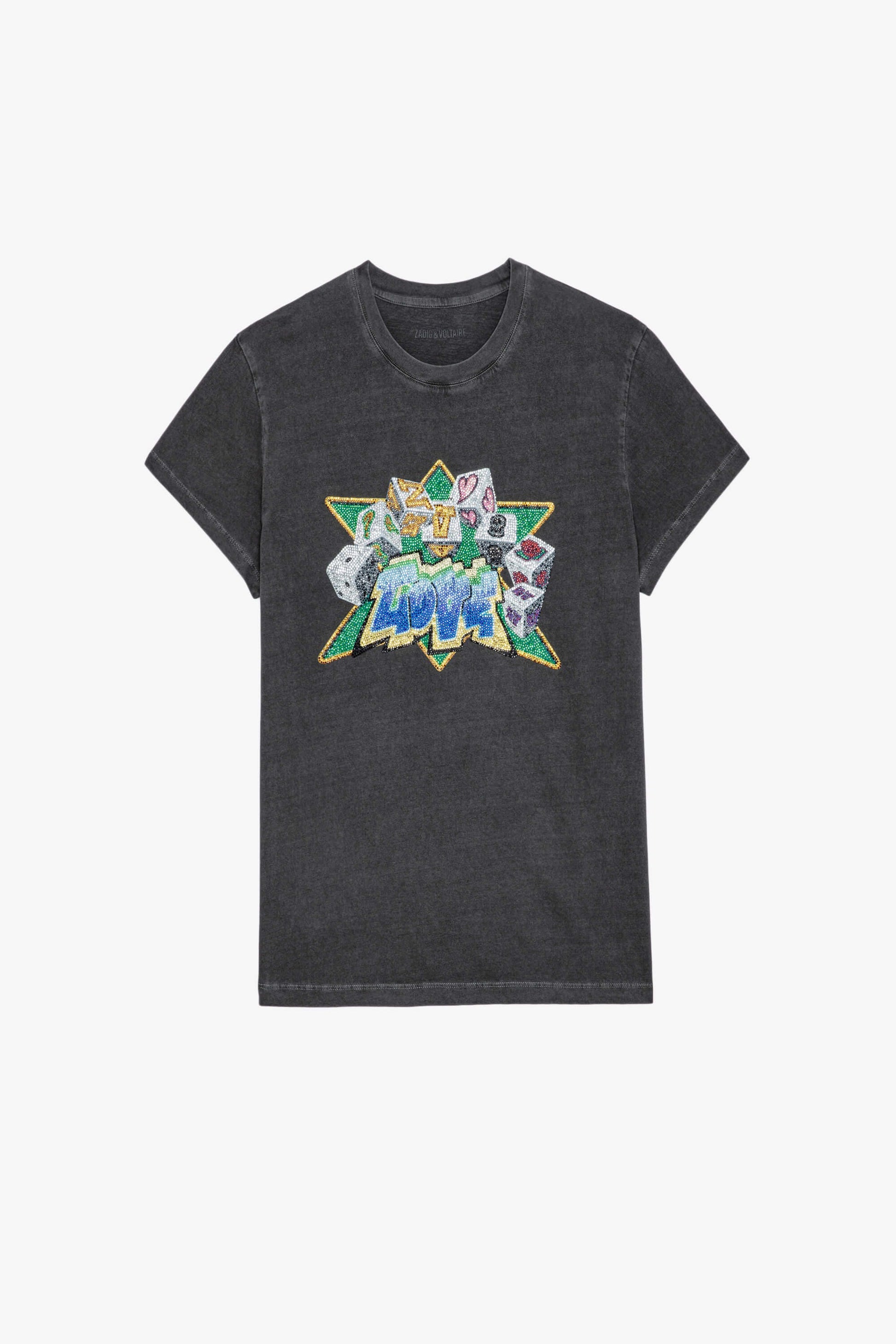 Adorned with a rhinestone print on the front designed by Korean artist Core Cho, this cotton T-shirt has a round neck and short sleeves.